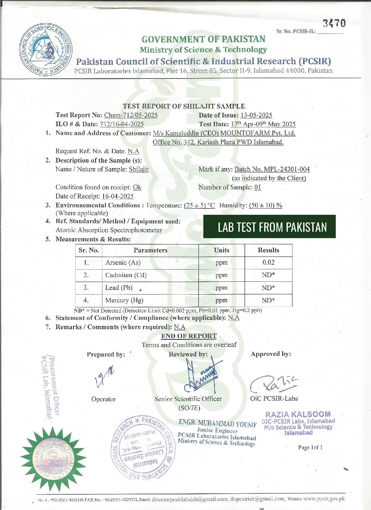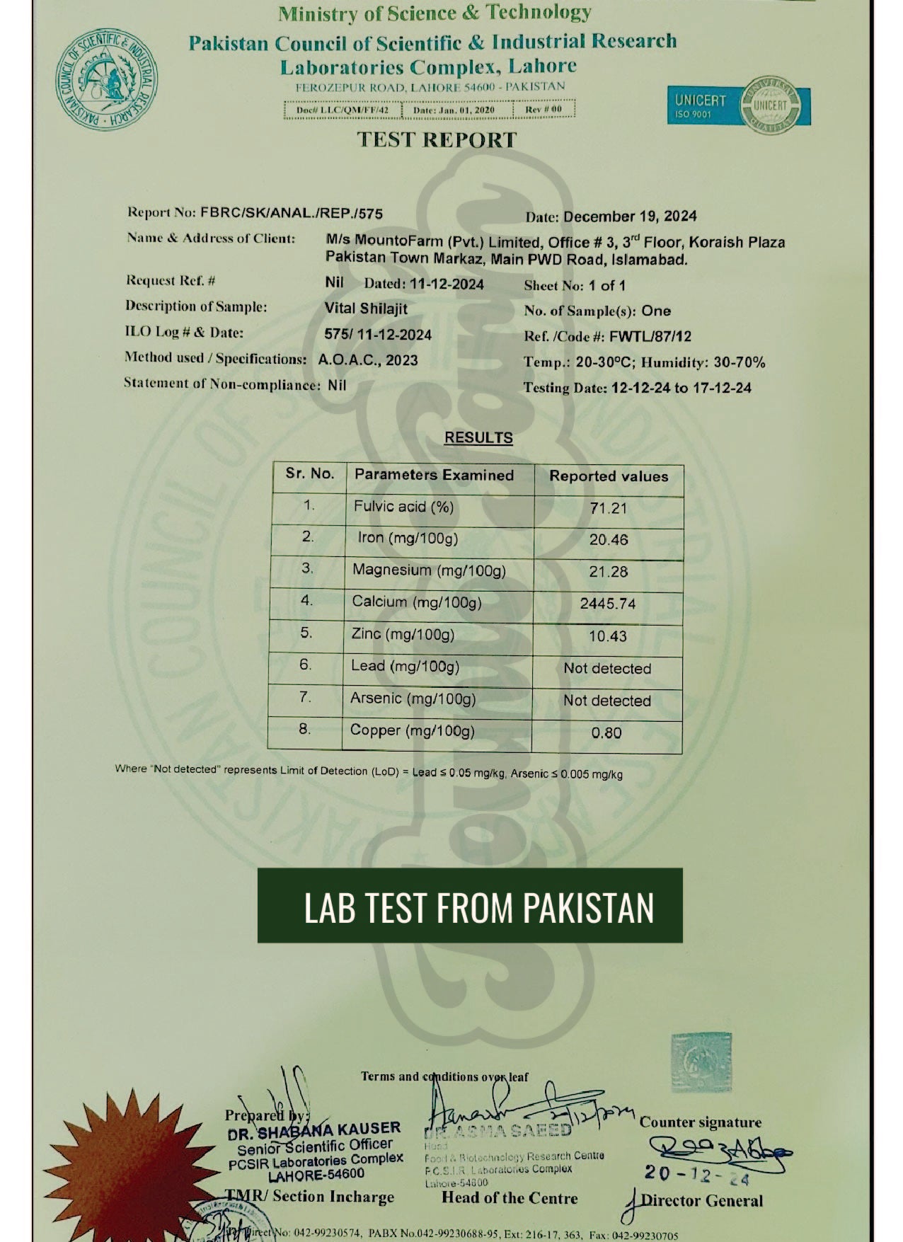 With PCSIR certification, you can trust that MountoFarm’s Shilajit is among the purest, safest, and most effective available in Pakistan.